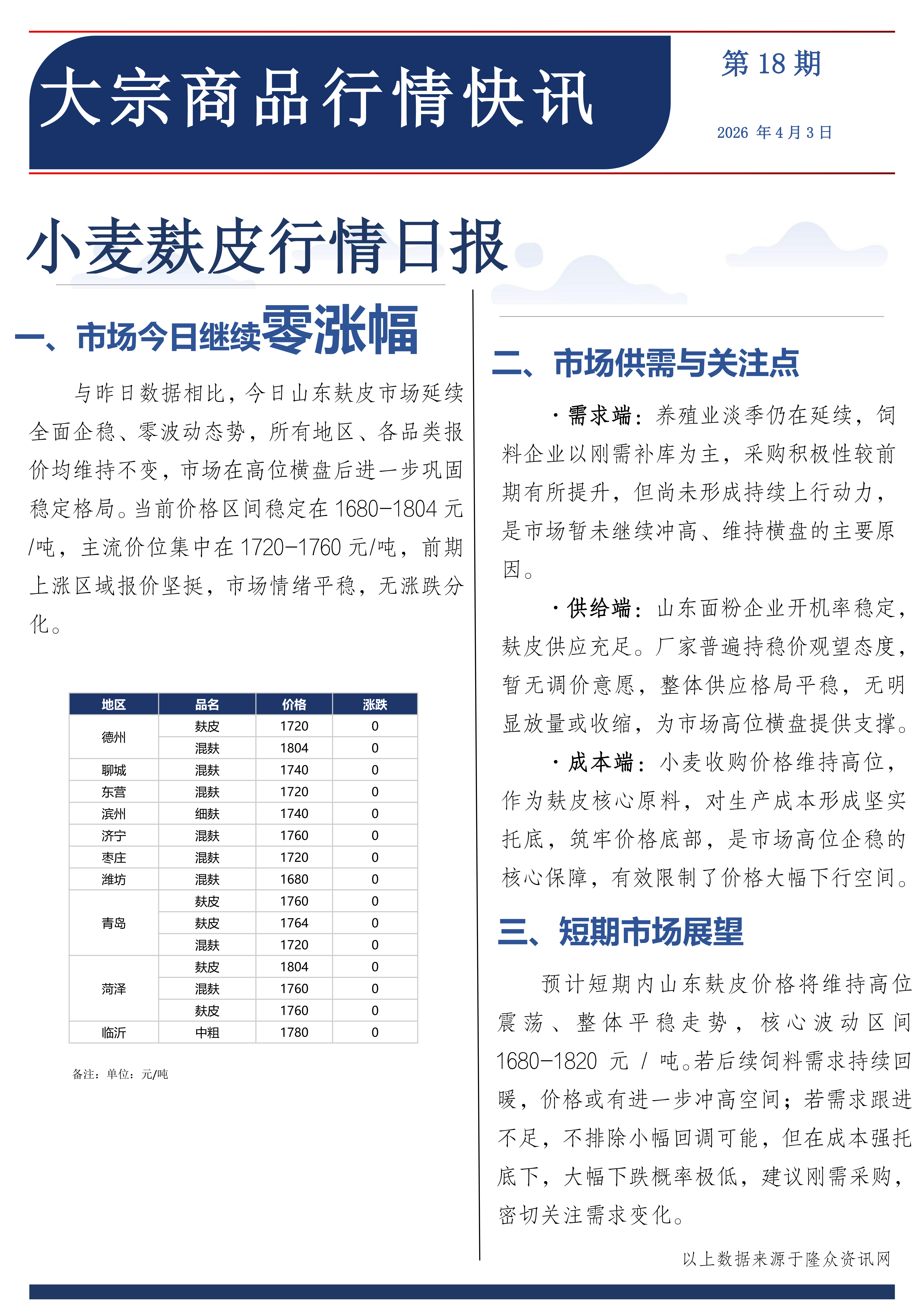小麦麸皮行情日报2026.4.3