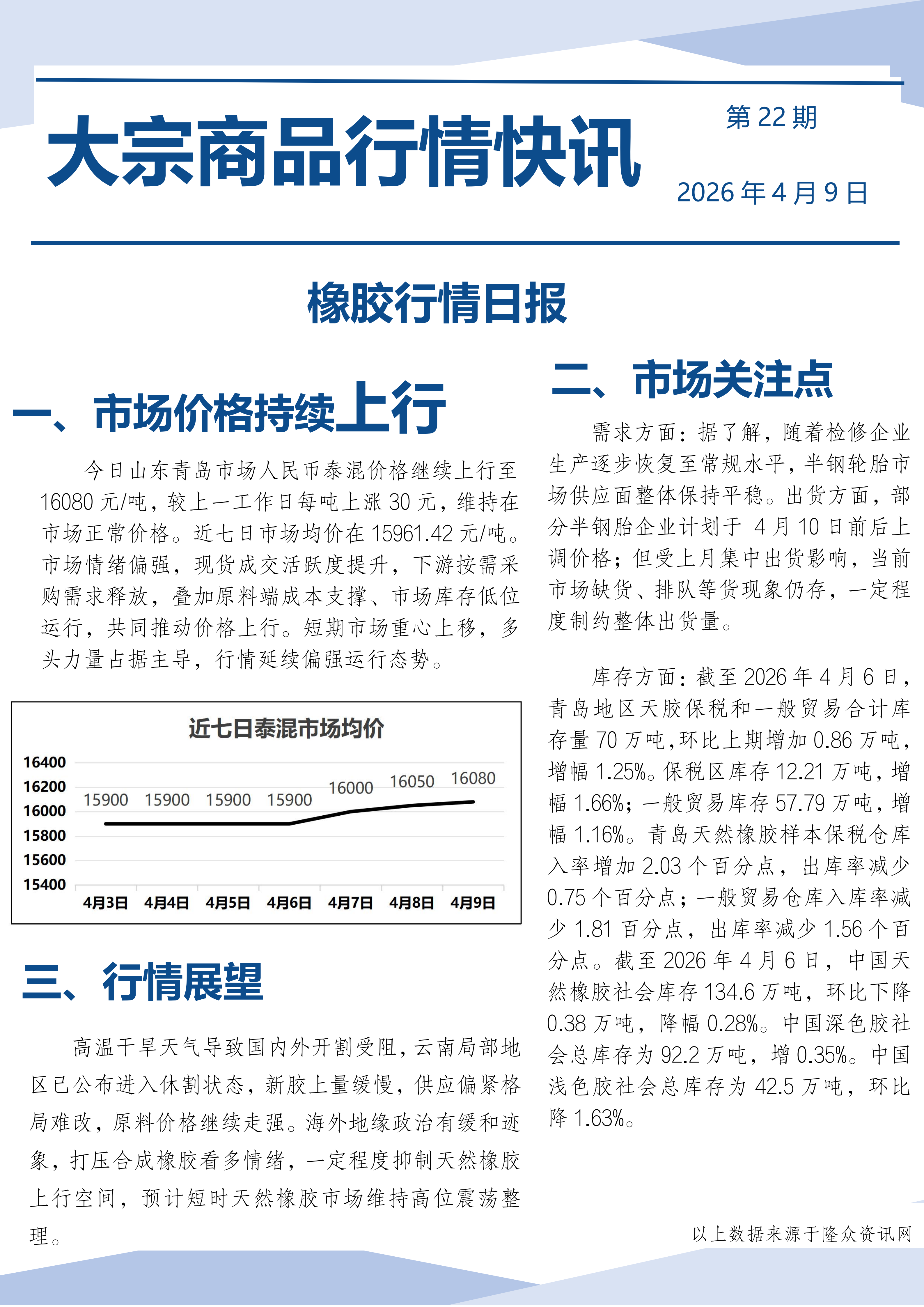 橡胶行情日报2026.4.9