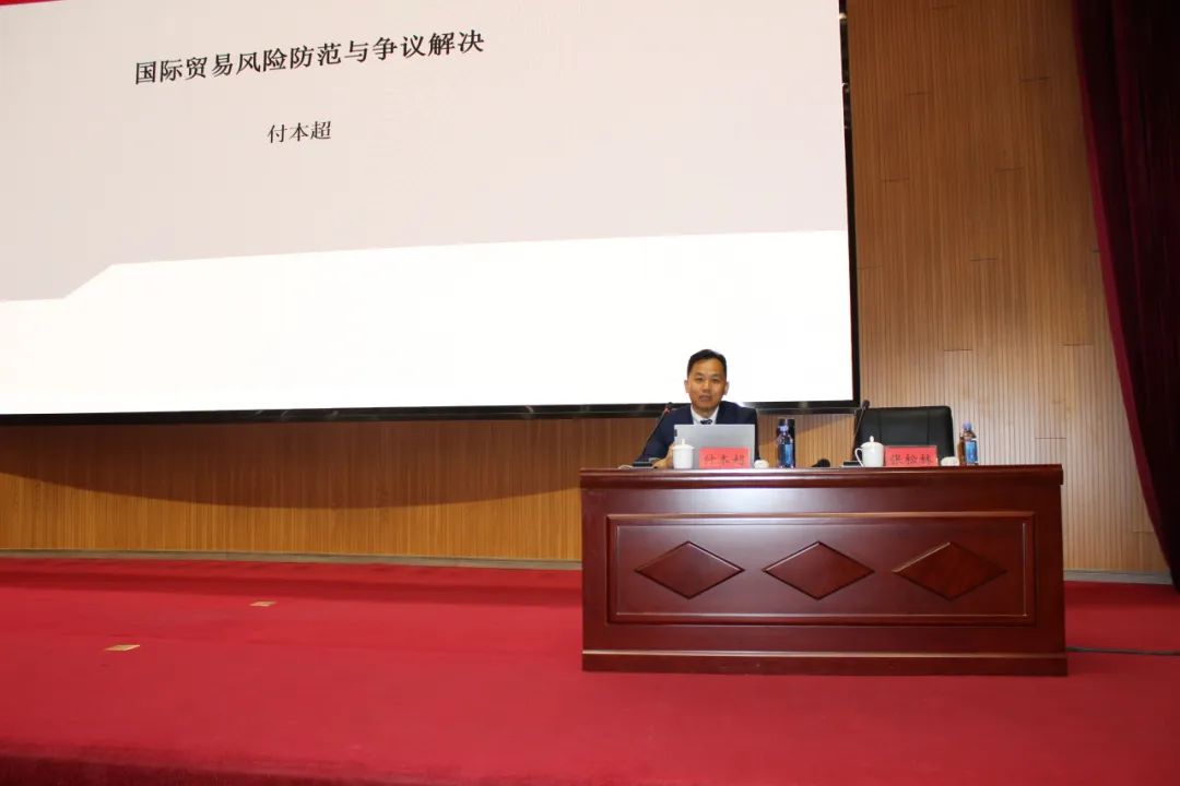 山东大学法学院副院长、教授、博士生导师付本超教授以 “国际贸易风险防范及争议解决”为题,深入分析当前国际贸易形势,围绕全球贸易争端摩擦的最新动态提出解决涉外商事纠纷的应对策略,并对如何成为一名优秀的涉外法律人才指明方向,助力企业筑牢国际贸易风险防线。