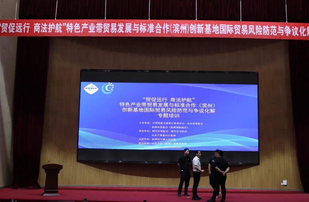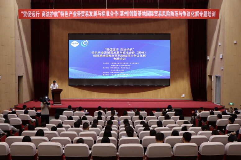 5月29日,由中国贸促会商业行业委员会、山东省贸促会、滨州市贸促会主办,博兴县贸促会、博兴县司法局、山东千乘进出口集团承办的“贸促远行 商法护航” 特色产业带贸易发展与标准合作(滨州)创新基地国际贸易风险防范与争议化解专题培训在博兴成功举办。